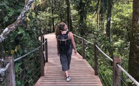 “Australië heeft toch echt wel een plekje in mijn hart! 8 maanden lang mocht ik Cairns, in North Queensland, mijn thuis noemen. Gelegen tussen het tropische regenwoud en het Great Barrier Reef - Ik als scuba duiker, zat daar helemaal op mijn plek! Sowieso, hangt er een hele gemoedelijke sfeer in Australië. Niemand heeft er haast en het weer is goed, wat wil je nog meer? Echte highlights voor mij waren: kamperen op Fraser Island, duiken op het Great Barrier Reef, surfen in Byron Bay, een cruise bij de Whitsunday eilanden en een skydive… Iets waarvan ik altijd heb gezegd dat ik het nooit zou doen. Maar wat was het tof, en wat ben ik blij het toch gedaan te hebben. Tussen de wolken, op links het regenwoud en rechts de zee, en een landing op het strand. Wat een manier om mijn tijd in Australië mee af te sluiten!”